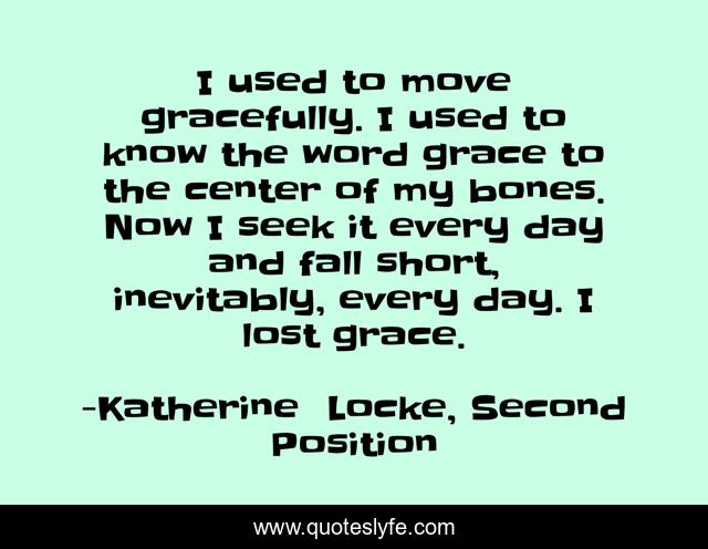 This page presents the quote "I used to move gracefully. I used to know the word grace to the center of my bones. Now I seek it every day and fall short, inevitably, every day. I lost grace.". Author of this quote is Katherine Locke, Second Position. This quote is about trauma, grace, dancing,.