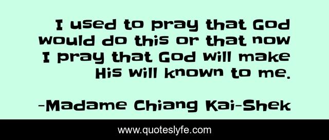 This page presents the quote "I used to pray that God would do this or that now I pray that God will make His will known to me.". Author of this quote is Madame Chiang Kai-Shek. .