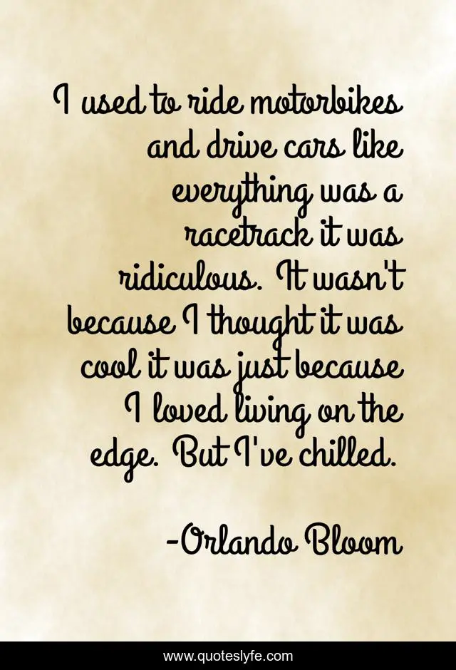 "Orlando Bloom Quotes." Quoteslyfe.com, 2025. Tue. 09 Dec. 2025. <https://www.quoteslyfe.com/quote/I-used-to-ride-motorbikes-and-drive-287884>.