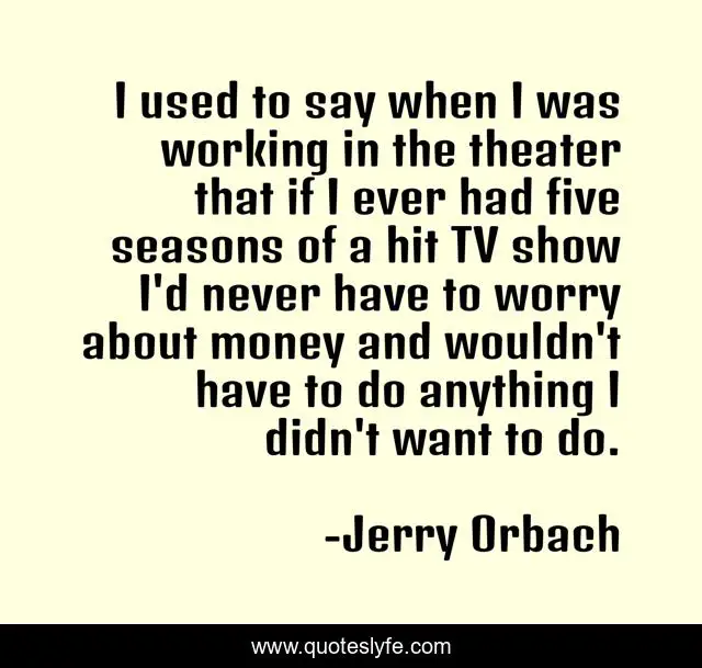 This page presents the quote "I used to say when I was working in the theater that if I ever had five seasons of a hit TV show I'd never have to worry about money and wouldn't have to do anything I didn't want to do.". Author of this quote is Jerry Orbach. This quote is about seasons, worry,.