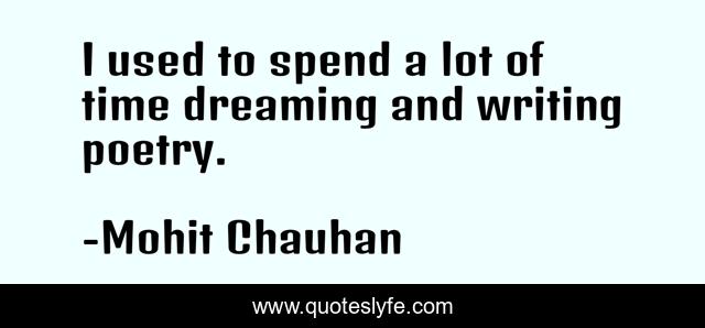 This page presents the quote "I used to spend a lot of time dreaming and writing poetry.". Author of this quote is Mohit Chauhan. This quote is about writing, time, dreaming,.
