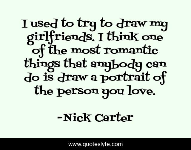 This page presents the quote "I used to try to draw my girlfriends. I think one of the most romantic things that anybody can do is draw a portrait of the person you love.". Author of this quote is Nick Carter. This quote is about portrait, love, think, affection,.