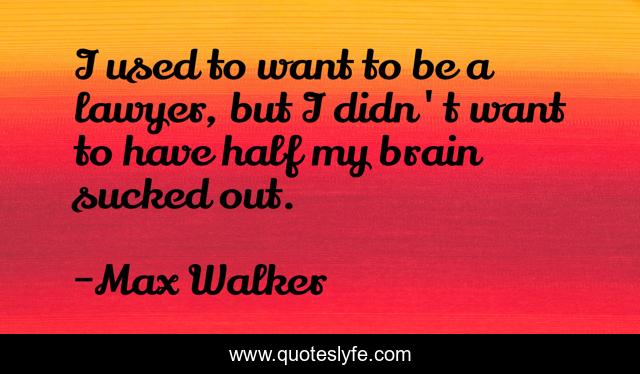This page presents the quote "I used to want to be a lawyer, but I didn't want to have half my brain sucked out.". Author of this quote is Max Walker. This quote is about brain, lawyer,.