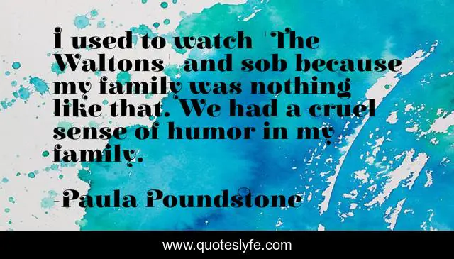This page presents the quote "I used to watch 'The Waltons' and sob because my family was nothing like that. We had a cruel sense of humor in my family.". Author of this quote is Paula Poundstone. This quote is about sense of humor, family,.