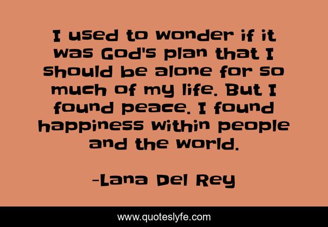 This page presents the quote "I used to wonder if it was God's plan that I should be alone for so much of my life. But I found peace. I found happiness within people and the world.". Author of this quote is Lana Del Rey. This quote is about god, life,.