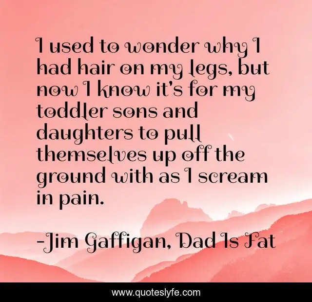 This page presents the quote "I used to wonder why I had hair on my legs, but now I know it's for my toddler sons and daughters to pull themselves up off the ground with as I scream in pain.". Author of this quote is Jim Gaffigan, Dad Is Fat. This quote is about leg-hair, funny, kids, comedy, parenting,.