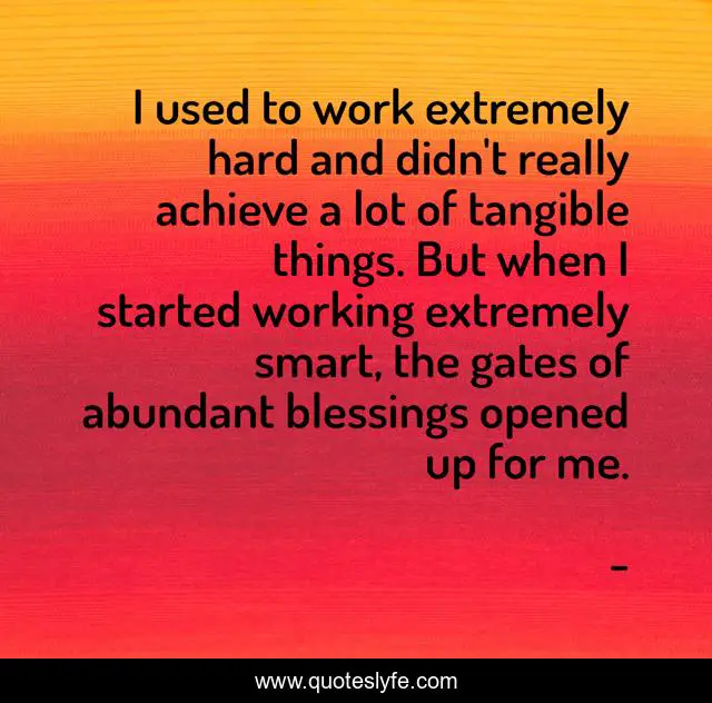 This page presents the quote "I used to work extremely hard and didn't really achieve a lot of tangible things. But when I started working extremely smart, the gates of abundant blessings opened up for me.". Author of this quote is . This quote is about achieving-tangible-things, work-hard, edmond-mbiaka, work-smart, working-smart, abundant-blessings, working-hard,.