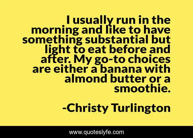 This page presents the quote "I usually run in the morning and like to have something substantial but light to eat before and after. My go-to choices are either a banana with almond butter or a smoothie.". Author of this quote is Christy Turlington. This quote is about light, run, choices,.