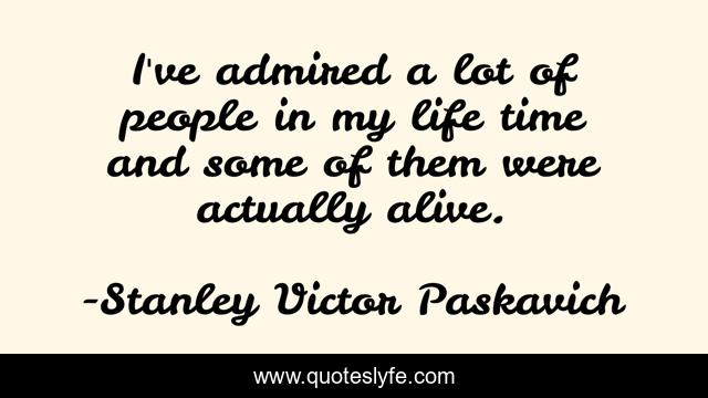 This page presents the quote "I've admired a lot of people in my life time and some of them were actually alive.". Author of this quote is Stanley Victor Paskavich. .