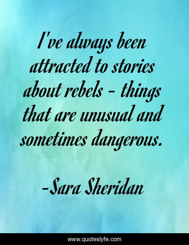This page presents the quote "I've always been attracted to stories about rebels - things that are unusual and sometimes dangerous.". Author of this quote is Sara Sheridan. This quote is about stories, rebels, danger,.