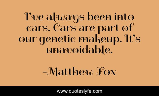 This page presents the quote "I've always been into cars. Cars are part of our genetic makeup. It's unavoidable.". Author of this quote is Matthew Fox. This quote is about always, part, makeup,.