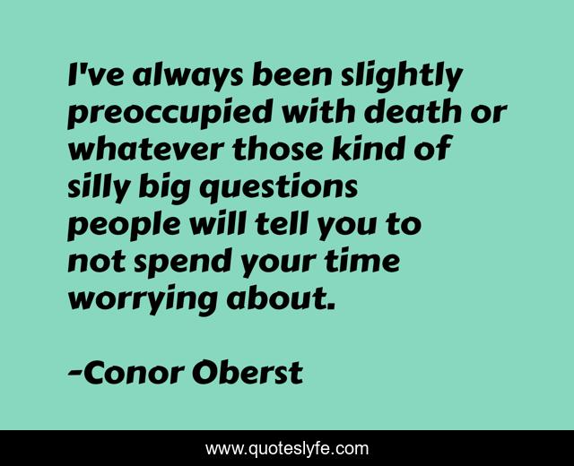 This page presents the quote "I've always been slightly preoccupied with death or whatever those kind of silly big questions people will tell you to not spend your time worrying about.". Author of this quote is Conor Oberst. This quote is about time, questions, people,.