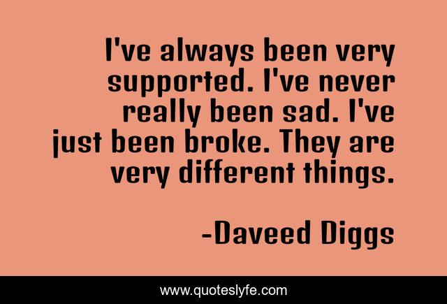 This page presents the quote "I've always been very supported. I've never really been sad. I've just been broke. They are very different things.". Author of this quote is Daveed Diggs. This quote is about always, different,.