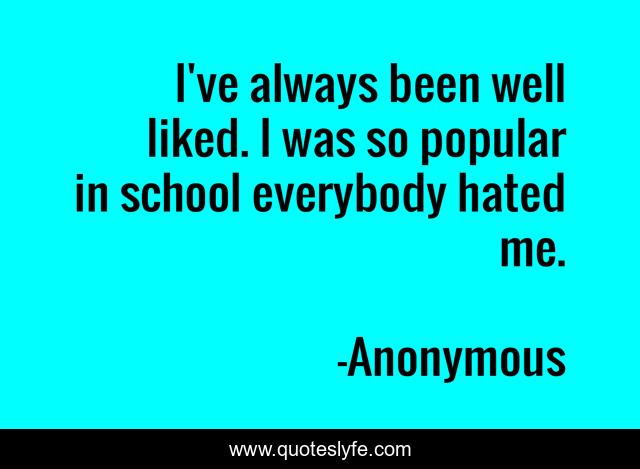 This page presents the quote "I've always been well liked. I was so popular in school everybody hated me.". Author of this quote is Anonymous. .