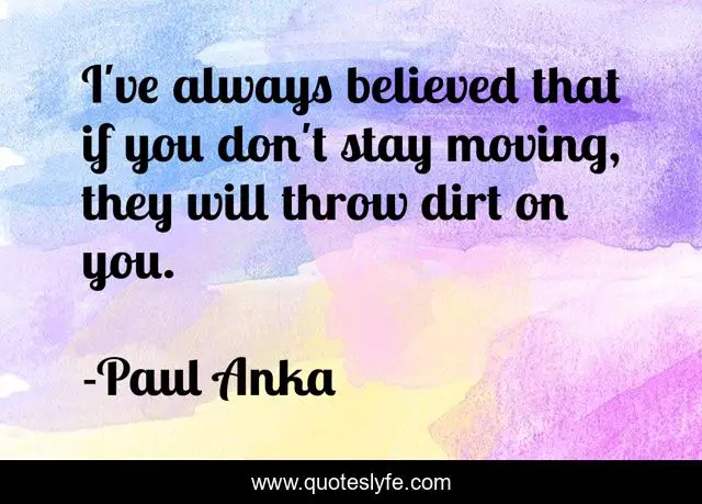 This page presents the quote "I've always believed that if you don't stay moving, they will throw dirt on you.". Author of this quote is Paul Anka. This quote is about moving, dirt,.