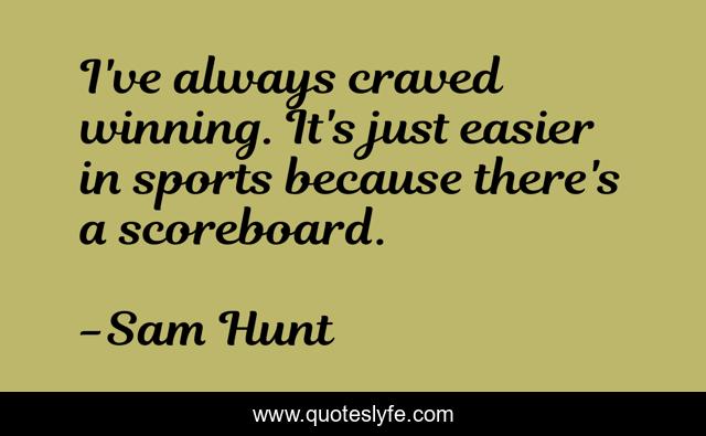 This page presents the quote "I've always craved winning. It's just easier in sports because there's a scoreboard.". Author of this quote is Sam Hunt. This quote is about always, easier, winning,.