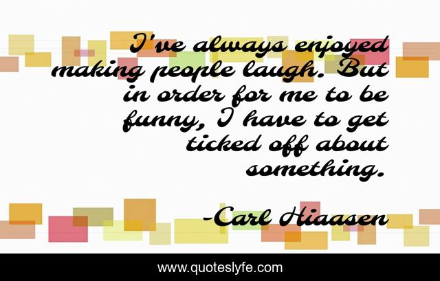 This page presents the quote "I've always enjoyed making people laugh. But in order for me to be funny, I have to get ticked off about something.". Author of this quote is Carl Hiaasen. This quote is about me, laugh, people,.