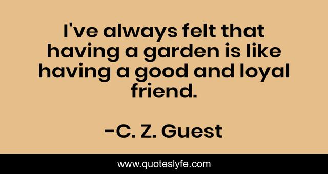 This page presents the quote "I've always felt that having a garden is like having a good and loyal friend.". Author of this quote is C. Z. Guest. This quote is about good, garden, friend,.