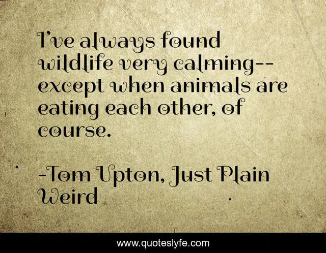This page presents the quote "I’ve always found wildlife very calming-- except when animals are eating each other, of course.". Author of this quote is Tom Upton, Just Plain Weird. This quote is about humor, life, young-adult,.