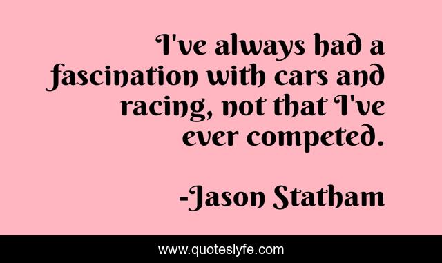 This page presents the quote "I've always had a fascination with cars and racing, not that I've ever competed.". Author of this quote is Jason Statham. This quote is about fascination, always, racing,.