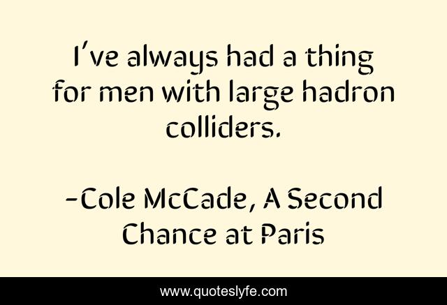This page presents the quote "I’ve always had a thing for men with large hadron colliders.". Author of this quote is Cole McCade, A Second Chance at Paris. This quote is about paris, romance, celeste, humor, science,.