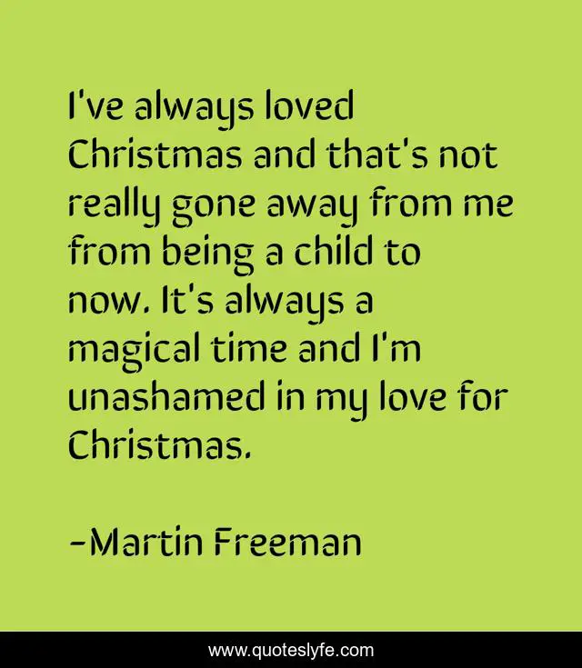 This page presents the quote "I've always loved Christmas and that's not really gone away from me from being a child to now. It's always a magical time and I'm unashamed in my love for Christmas.". Author of this quote is Martin Freeman. This quote is about time, love, affection, child,.