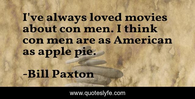 This page presents the quote "I've always loved movies about con men. I think con men are as American as apple pie.". Author of this quote is Bill Paxton. This quote is about american, men, apple,.