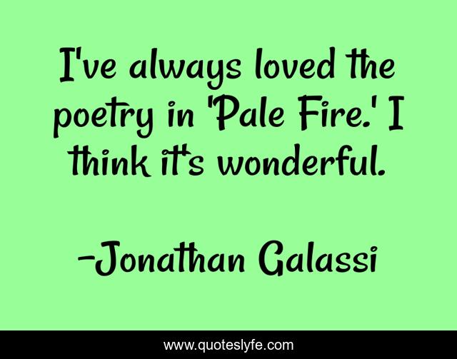 This page presents the quote "I've always loved the poetry in 'Pale Fire.' I think it's wonderful.". Author of this quote is Jonathan Galassi. This quote is about fire, loved, think,.