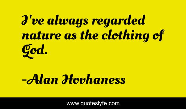 This page presents the quote "I've always regarded nature as the clothing of God.". Author of this quote is Alan Hovhaness. This quote is about god, clothing, always,.
