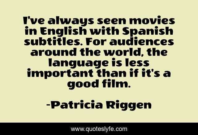 This page presents the quote "I've always seen movies in English with Spanish subtitles. For audiences around the world, the language is less important than if it's a good film.". Author of this quote is Patricia Riggen. This quote is about world, good, language,.