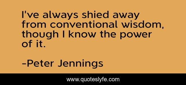 This page presents the quote "I've always shied away from conventional wisdom, though I know the power of it.". Author of this quote is Peter Jennings. This quote is about always, power,.
