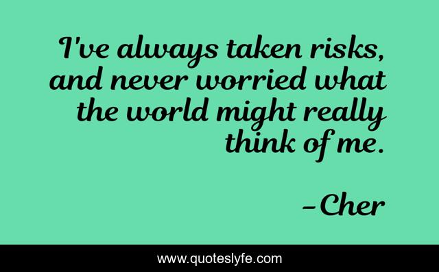 This page presents the quote "I've always taken risks, and never worried what the world might really think of me.". Author of this quote is Cher. This quote is about me, world, risks,.