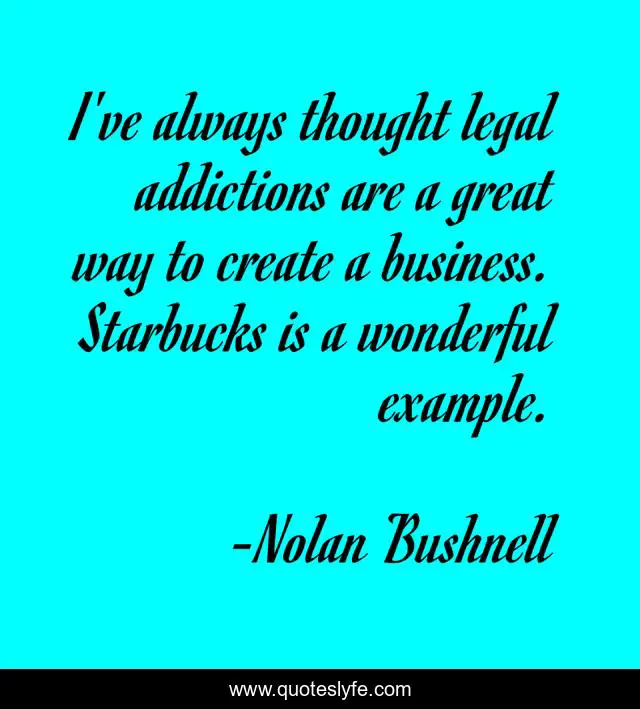 This page presents the quote "I've always thought legal addictions are a great way to create a business. Starbucks is a wonderful example.". Author of this quote is Nolan Bushnell. This quote is about thought, great, business,.