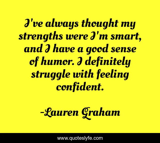 This page presents the quote "I've always thought my strengths were I'm smart, and I have a good sense of humor. I definitely struggle with feeling confident.". Author of this quote is Lauren Graham. This quote is about good, struggle, smart,.