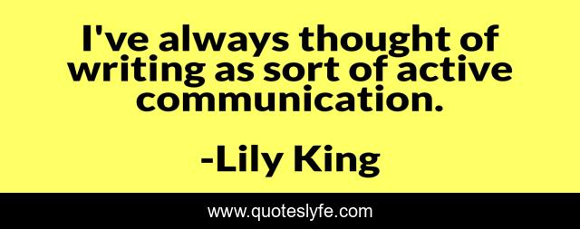This page presents the quote "I've always thought of writing as sort of active communication.". Author of this quote is Lily King. This quote is about thought, always, writing,.