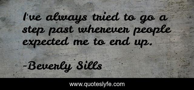 This page presents the quote "I've always tried to go a step past wherever people expected me to end up.". Author of this quote is Beverly Sills. This quote is about self, acceptance,.