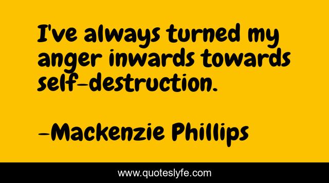 This page presents the quote "I've always turned my anger inwards towards self-destruction.". Author of this quote is Mackenzie Phillips. This quote is about always, self-destruction,.