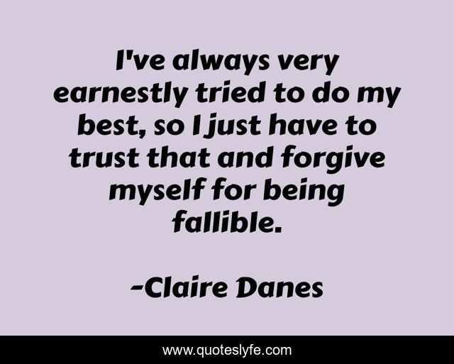 This page presents the quote "I've always very earnestly tried to do my best, so I just have to trust that and forgive myself for being fallible.". Author of this quote is Claire Danes. This quote is about myself, forgive, best,.