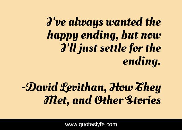 This page presents the quote "I've always wanted the happy ending, but now I'll just settle for the ending.". Author of this quote is David Levithan, How They Met, and Other Stories. This quote is about heartbreak, love, affection,.