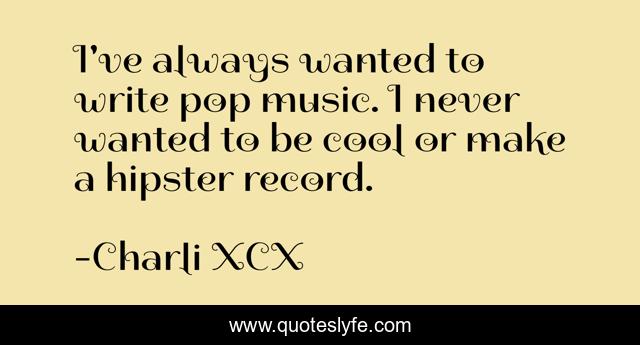 This page presents the quote "I've always wanted to write pop music. I never wanted to be cool or make a hipster record.". Author of this quote is Charli XCX. This quote is about always, music,.