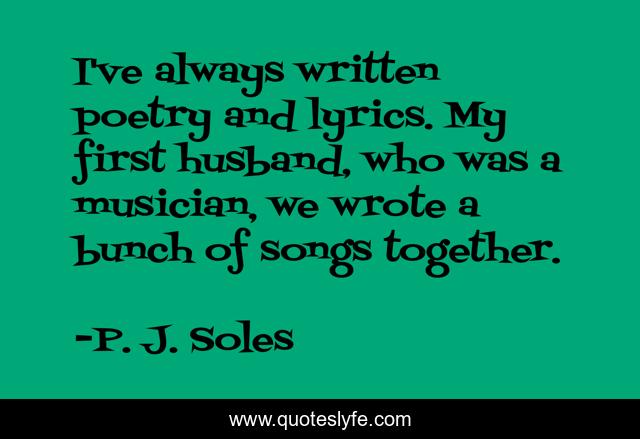 This page presents the quote "I've always written poetry and lyrics. My first husband, who was a musician, we wrote a bunch of songs together.". Author of this quote is P. J. Soles. This quote is about together, husband, first,.