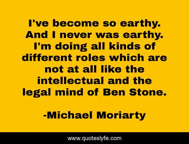 This page presents the quote "I've become so earthy. And I never was earthy. I'm doing all kinds of different roles which are not at all like the intellectual and the legal mind of Ben Stone.". Author of this quote is Michael Moriarty. This quote is about stone, mind,.