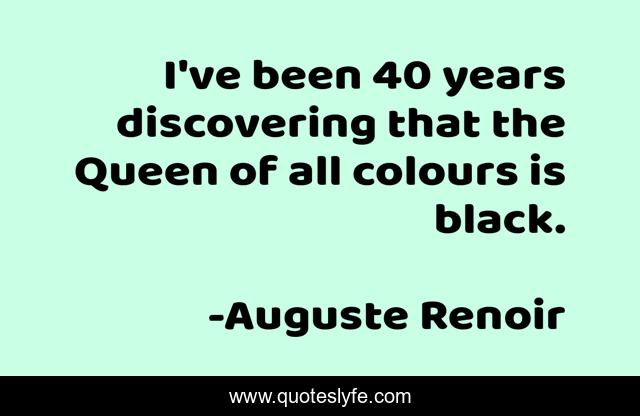 This page presents the quote "I've been 40 years discovering that the Queen of all colours is black.". Author of this quote is Auguste Renoir. This quote is about art, artist,.