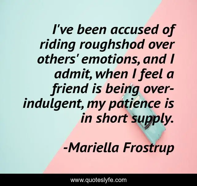 This page presents the quote "I've been accused of riding roughshod over others' emotions, and I admit, when I feel a friend is being over-indulgent, my patience is in short supply.". Author of this quote is Mariella Frostrup. This quote is about short, friend, emotions,.