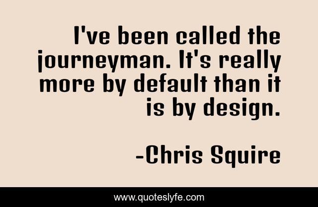 This page presents the quote "I've been called the journeyman. It's really more by default than it is by design.". Author of this quote is Chris Squire. This quote is about been, more,.