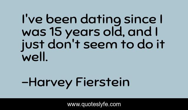 This page presents the quote "I've been dating since I was 15 years old, and I just don't seem to do it well.". Author of this quote is Harvey Fierstein. This quote is about old, well, years,.