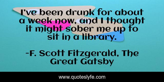 This page presents the quote "I’ve been drunk for about a week now, and I thought it might sober me up to sit in a library.". Author of this quote is F. Scott Fitzgerald, The Great Gatsby. .