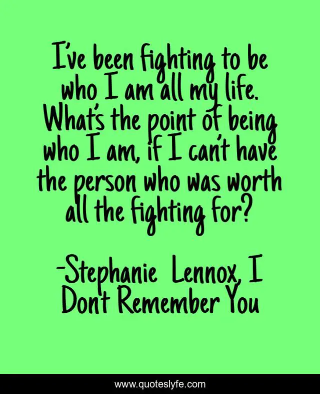 "Stephanie Lennox, I Don't Remember You Quotes." Quoteslyfe.com, 2025. Fri. 05 Dec. 2025. <https://www.quoteslyfe.com/quote/I-ve-been-fighting-to-be-who-195>.