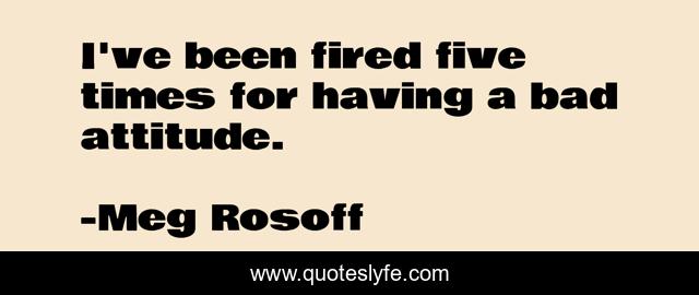 This page presents the quote "I've been fired five times for having a bad attitude.". Author of this quote is Meg Rosoff. This quote is about bad, five, fired,.