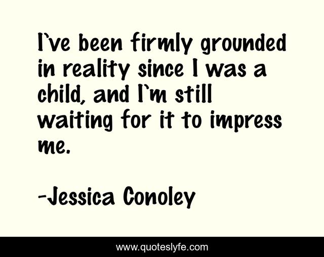 This page presents the quote "I’ve been firmly grounded in reality since I was a child, and I’m still waiting for it to impress me.". Author of this quote is Jessica Conoley. This quote is about creativity, humor, inspirational, enthusiasm,.